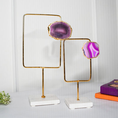 The unique patterns and rich hues of the Pink agate bring a splash of color and sophistication, while the durable metal frame adds a touch of industrial charm. Perfect for minimalist, modern, or eclectic interiors, these showpieces are as versatile as they are beautiful.